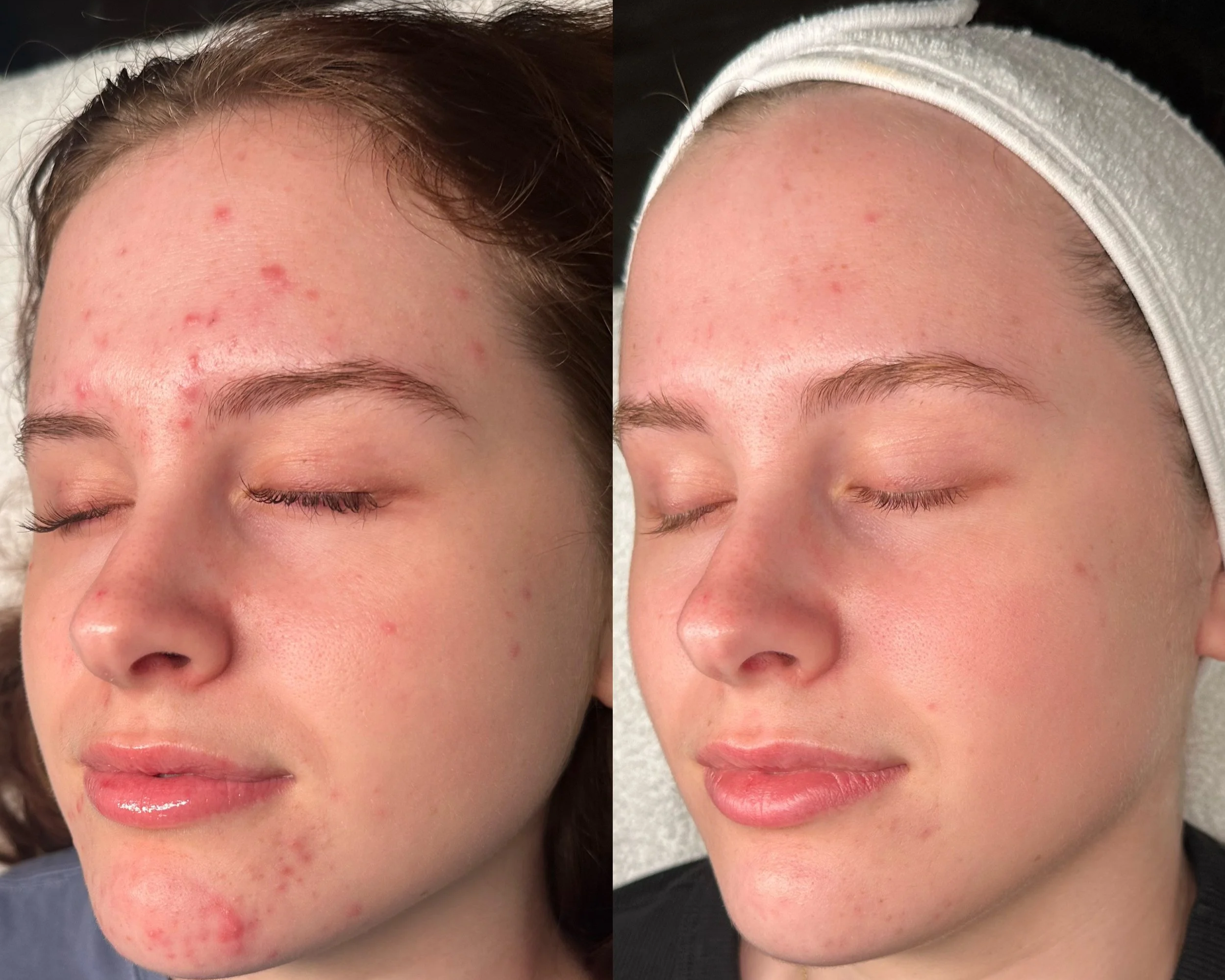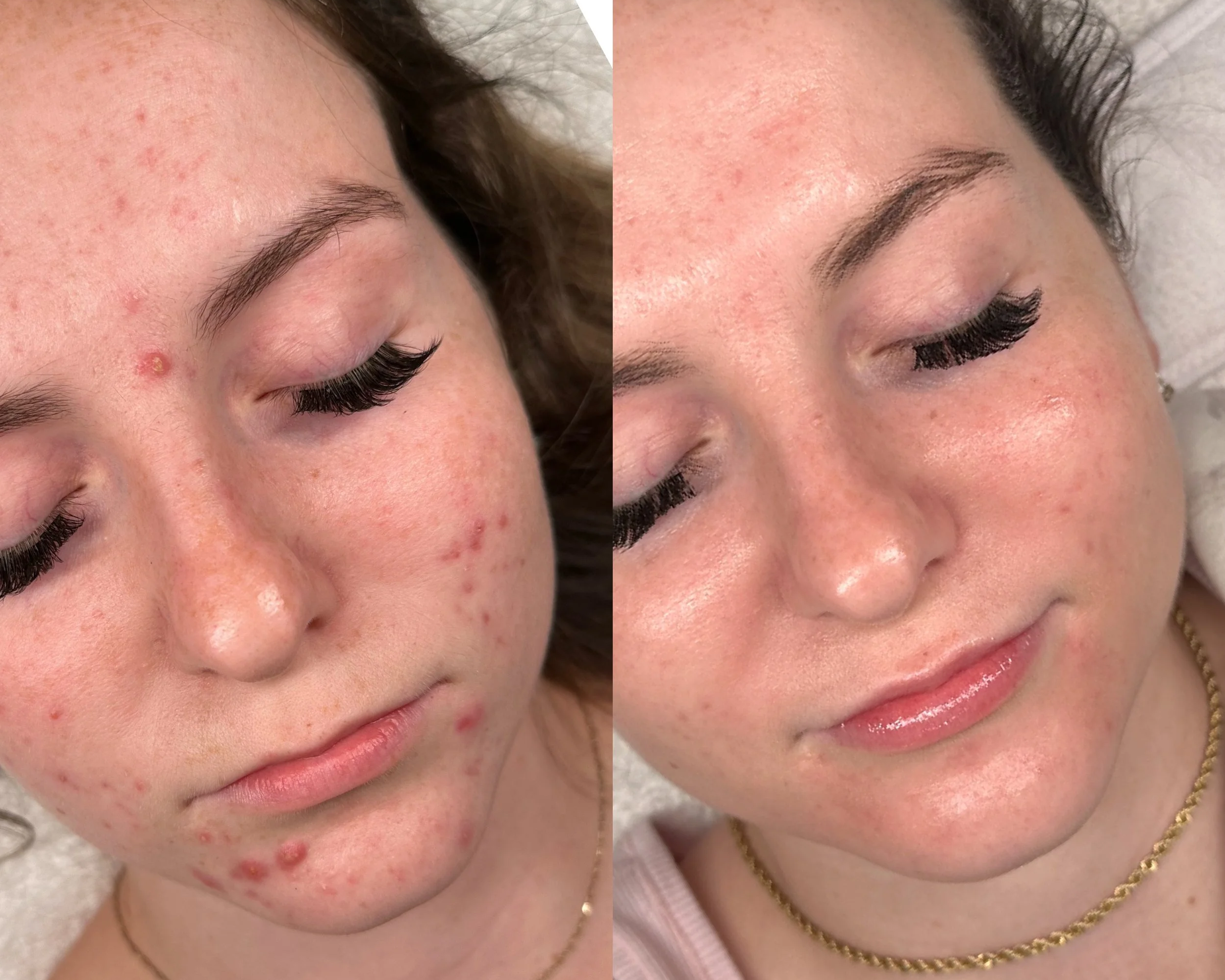 During a new client acne consultation, we perform a skin analysis, take photos, and identify your acne type. We then create a personalized treatment plan and recommend a custom skincare regimen. Bi-weekly treatments are scheduled to clear acne in about 90 days, with follow-ups to monitor progress and adjust as needed. This program is a commitment to improving your skin health!